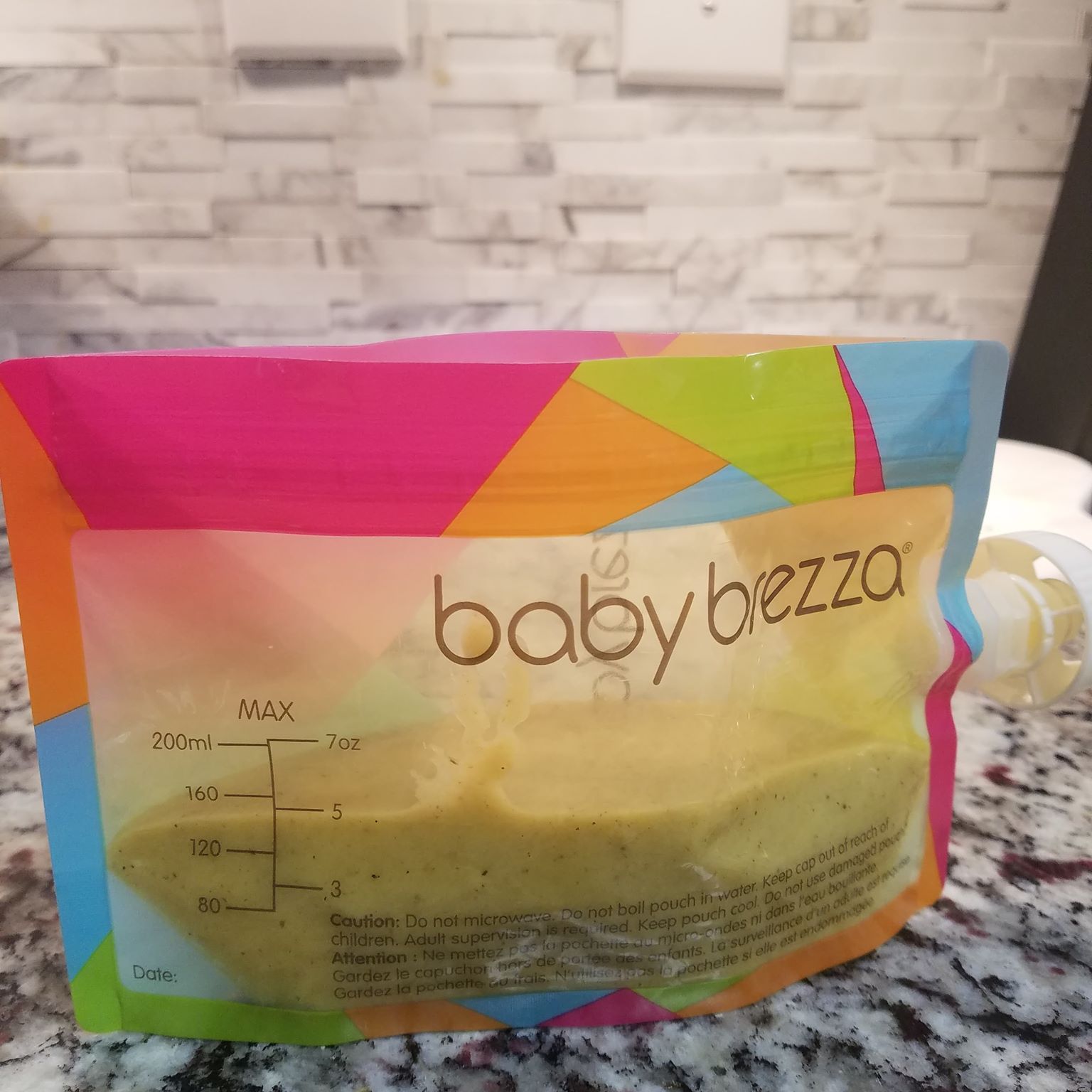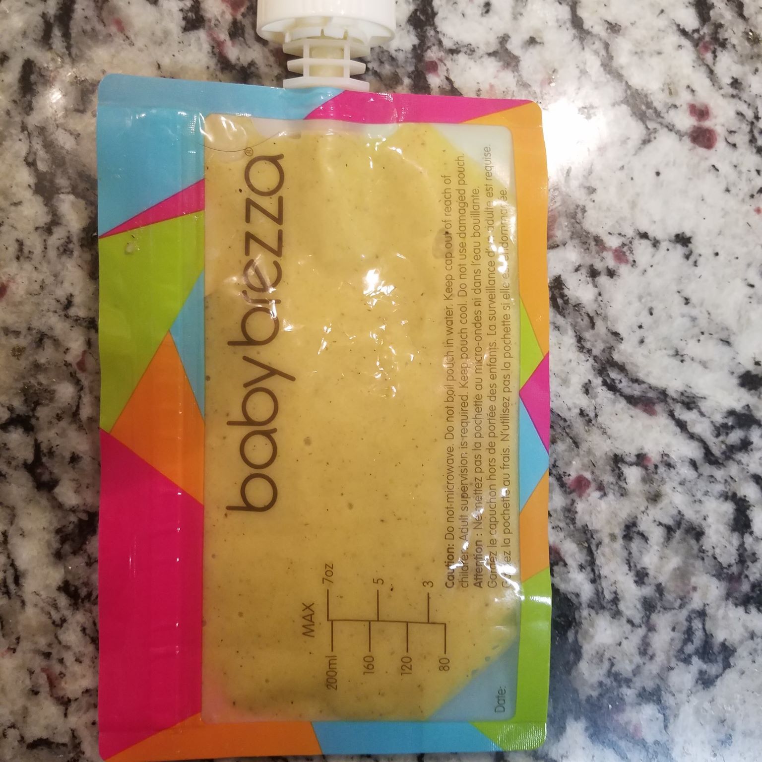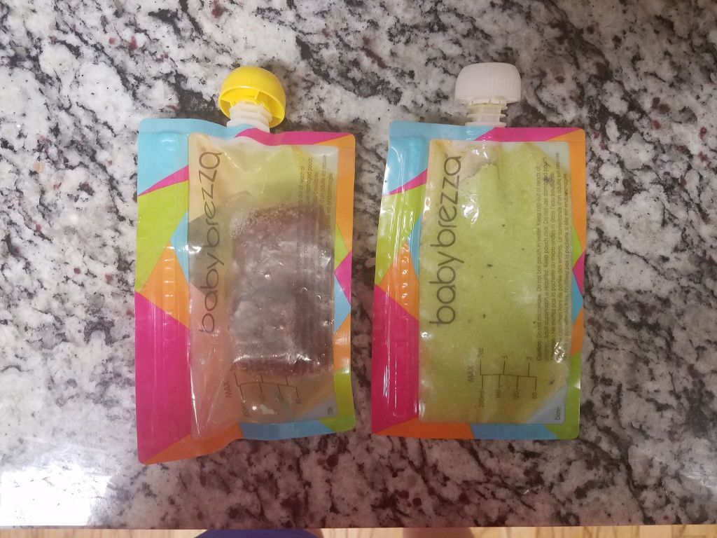 I pour the remaining baby food straight into my Baby Brezza Food Storage Pouch and stick them in the refrigerator for LC’s next meal. These pouches are perfect for at home or on the go. When she was first starting out I would hold the pouch and measure out each bite on a spoon to feed her. Eventually she wanted to slurp it straight from the straw and now she is able to hold the pouch herself!