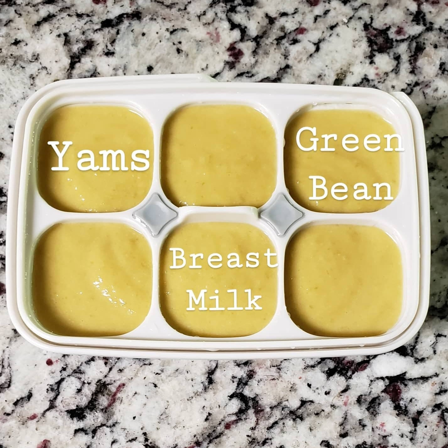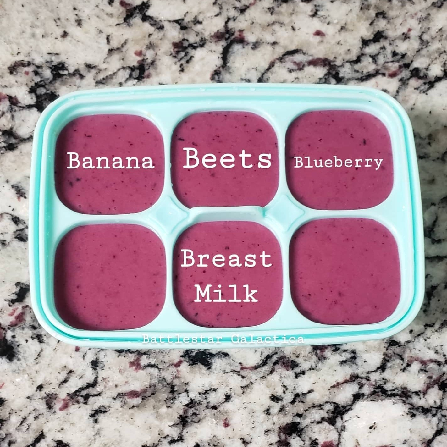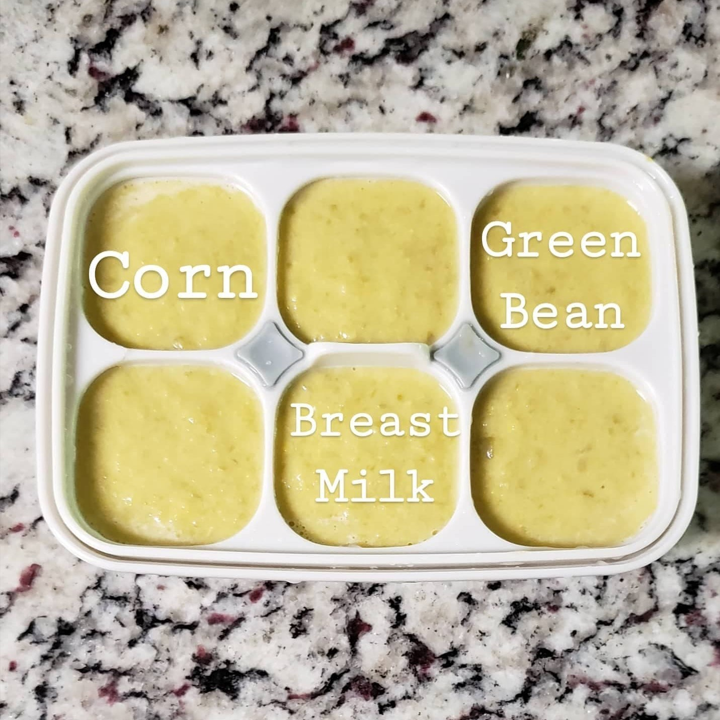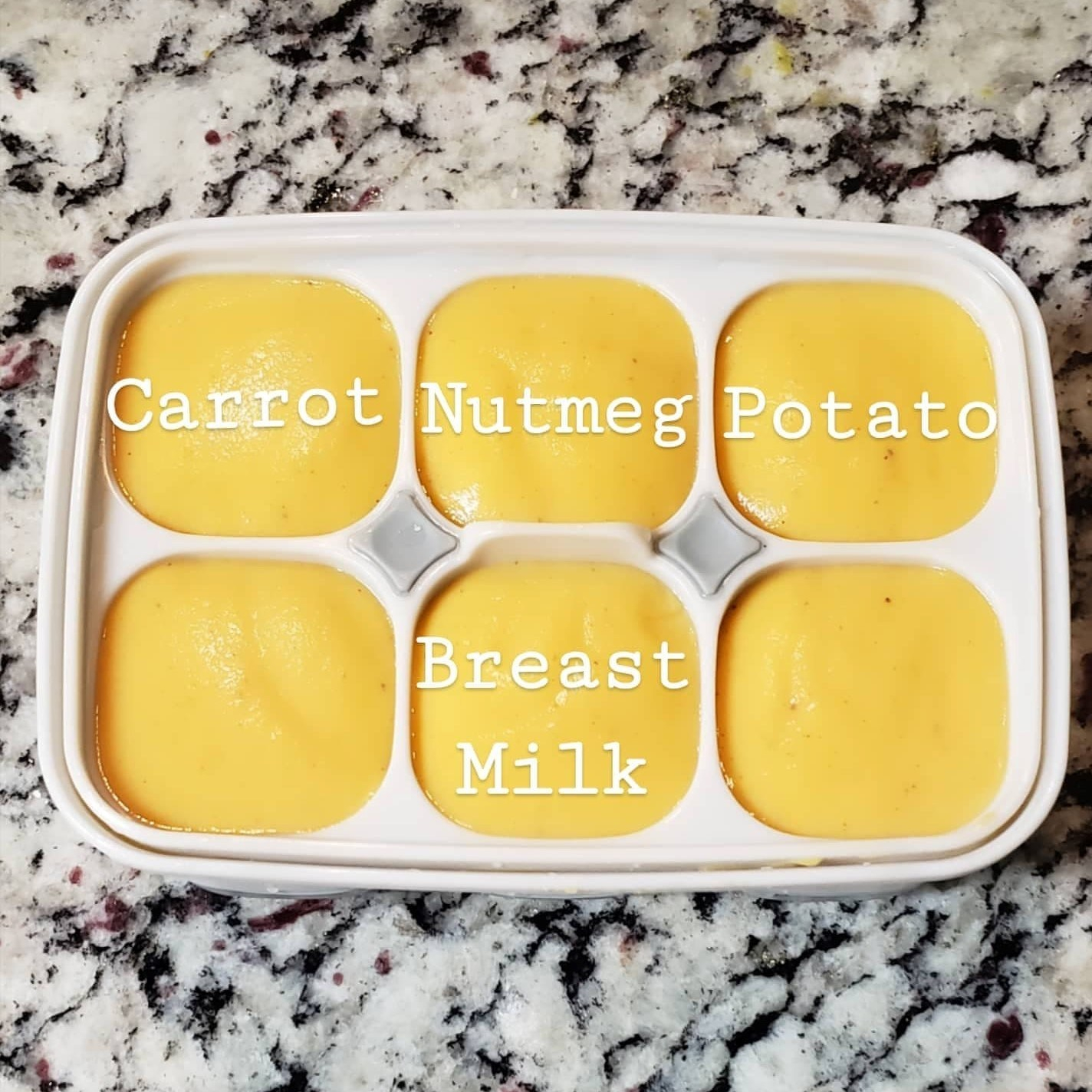 I love making homemade baby food! I use a ninja bullet to blend a variety of fresh and frozen food with breast milk! Any excuse to give more breast milk to my little one! Each of these containers are 12 oz (six 2oz pods) and I put about 5oz of breast milk in each batch. I freeze the pods and take out what I will need for the next day and put it in the fridge before bed. I use fresh produce whenever possible but frozen or canned fruits and veggies work in a pinch as well! These freezer meals will be good for 3mo in the freezer and she currently goes through about 18oz of food per day (she is 8 months and I am still breastfeeding).