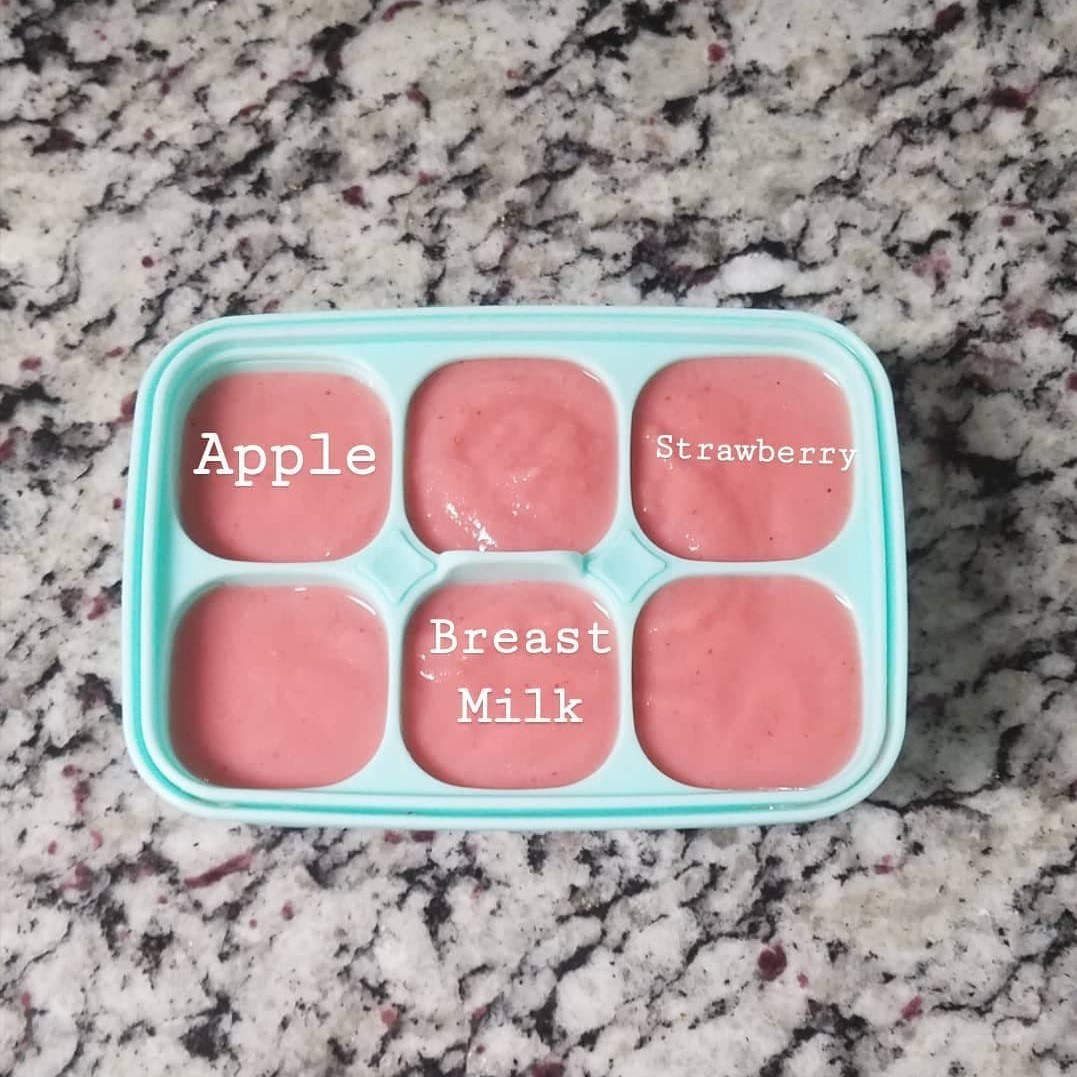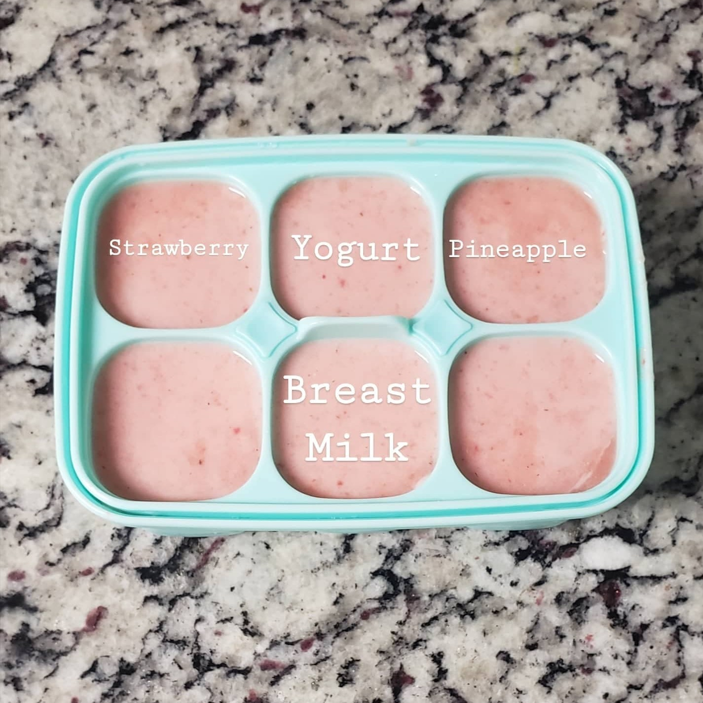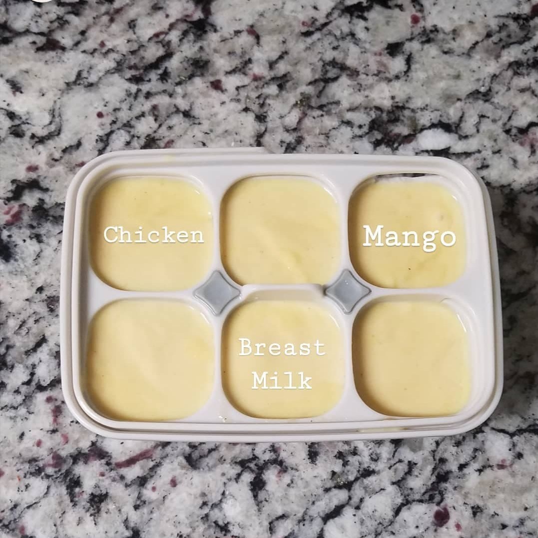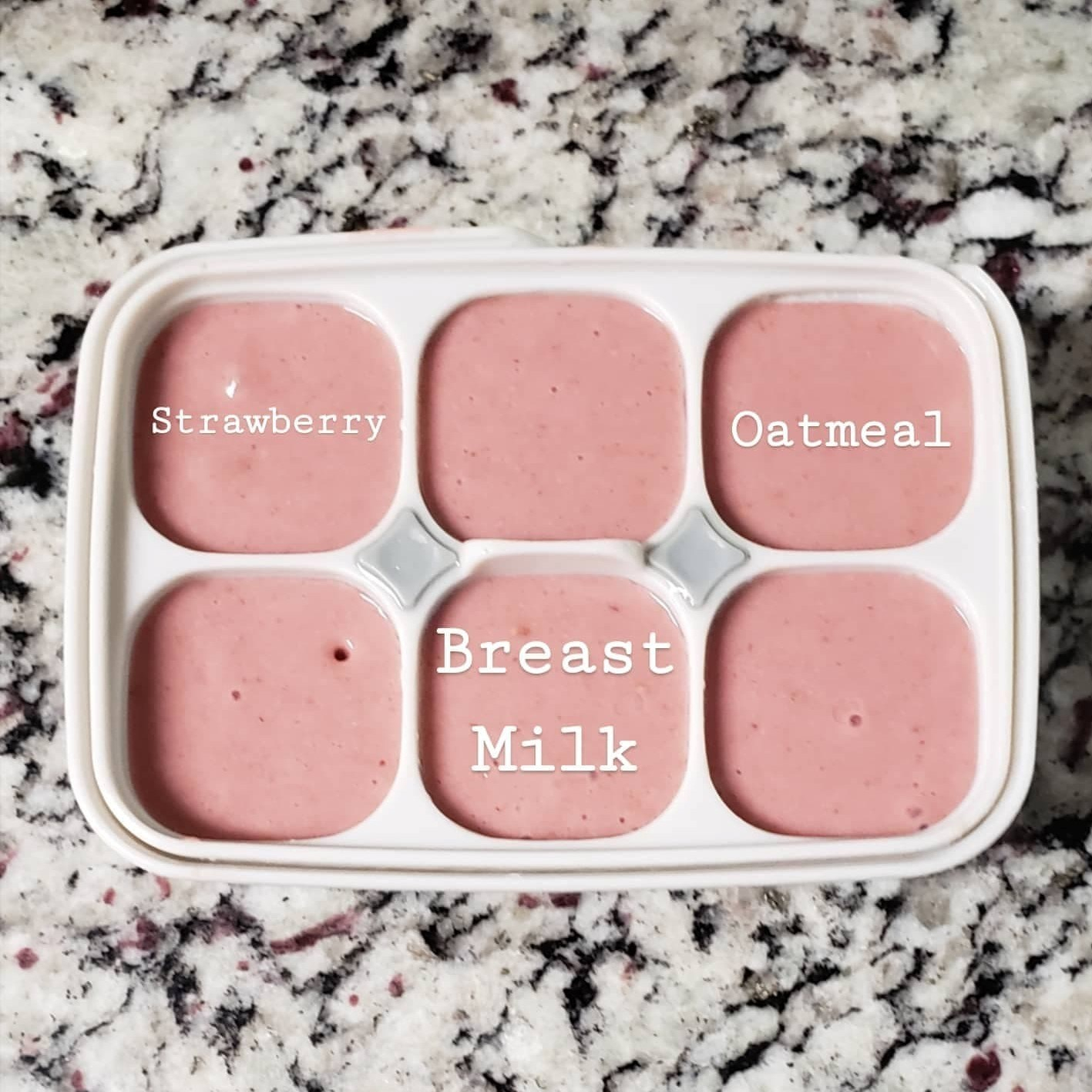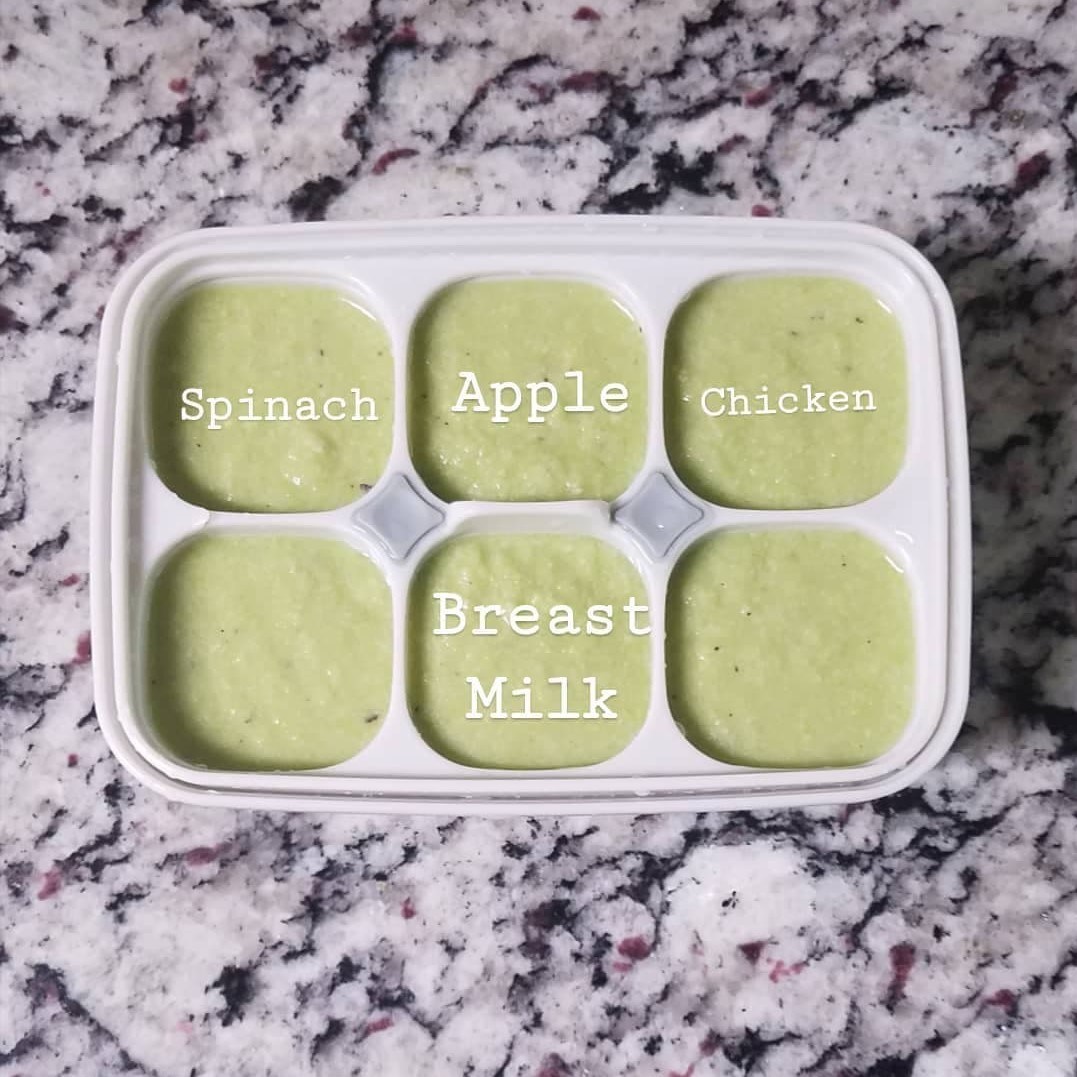 I love making homemade baby food! I use a ninja bullet to blend a variety of fresh and frozen food with breast milk! Any excuse to give more breast milk to my little one! Each of these containers are 12 oz (six 2oz pods) and I put about 5oz of breast milk in each batch. I freeze the pods and take out what I will need for the next day and put it in the fridge before bed. I use fresh produce whenever possible but frozen or canned fruits and veggies work in a pinch as well! These freezer meals will be good for 3mo in the freezer and she currently goes through about 18oz of food per day (she is 8 months and I am still breastfeeding).